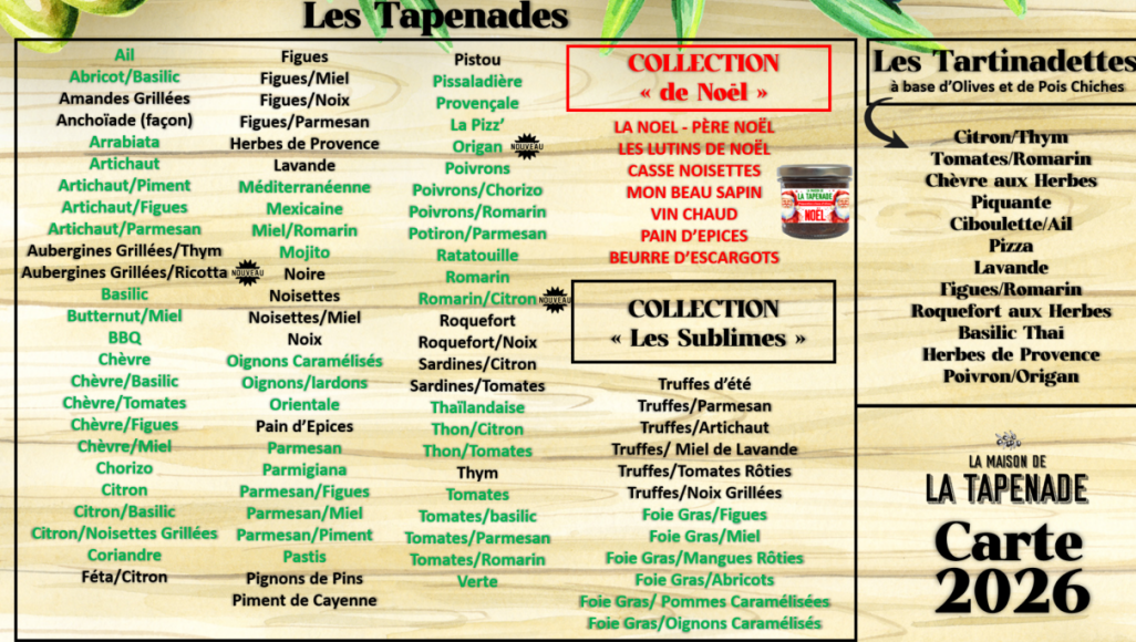 Oui. Nous créons chaque année des collections de tapenades de Noël, incluant notamment des tapenades à la truffe, au foie gras, ainsi que des recettes festives réunies dans des collections éphémères.